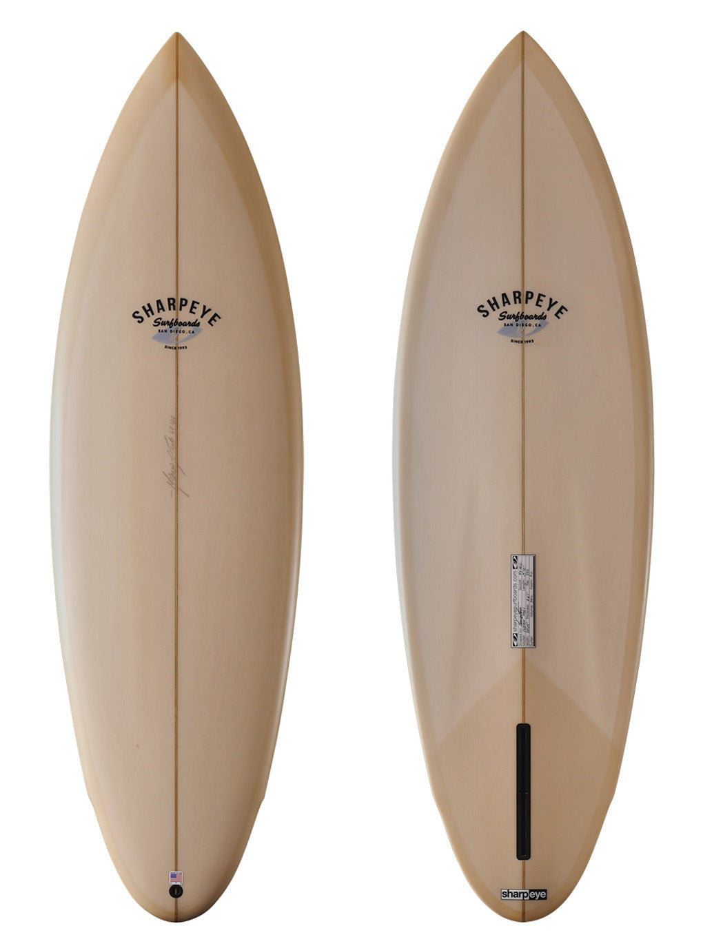 シャープアイサーフボードのモダンシリーズからもうひとひねりを入れたモデル、それがモダン1。モダン2のロッカーと厚みを取り入れながらも、レトロな要素を融合させた唯一無二の一本です。